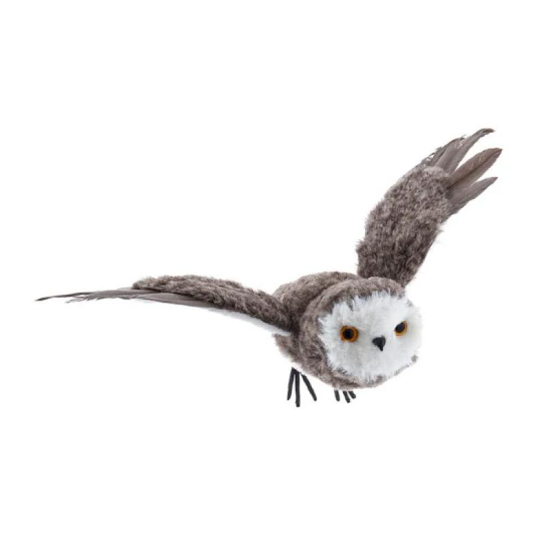 Kurt Adler's brown flying owl ornament is a fun addition to any holiday décor or Christmas tree. This owl has brown feathers, amber colored eyes and his wings are outstretched.