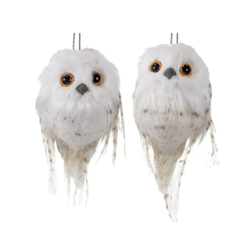 These white hanging owl ornaments Kurt Adler are a fun and festive addition to any holiday décor or Christmas tree. Including in this assortment are two white owls, each owl features white feathers with brown stripes and amber colored eyes.