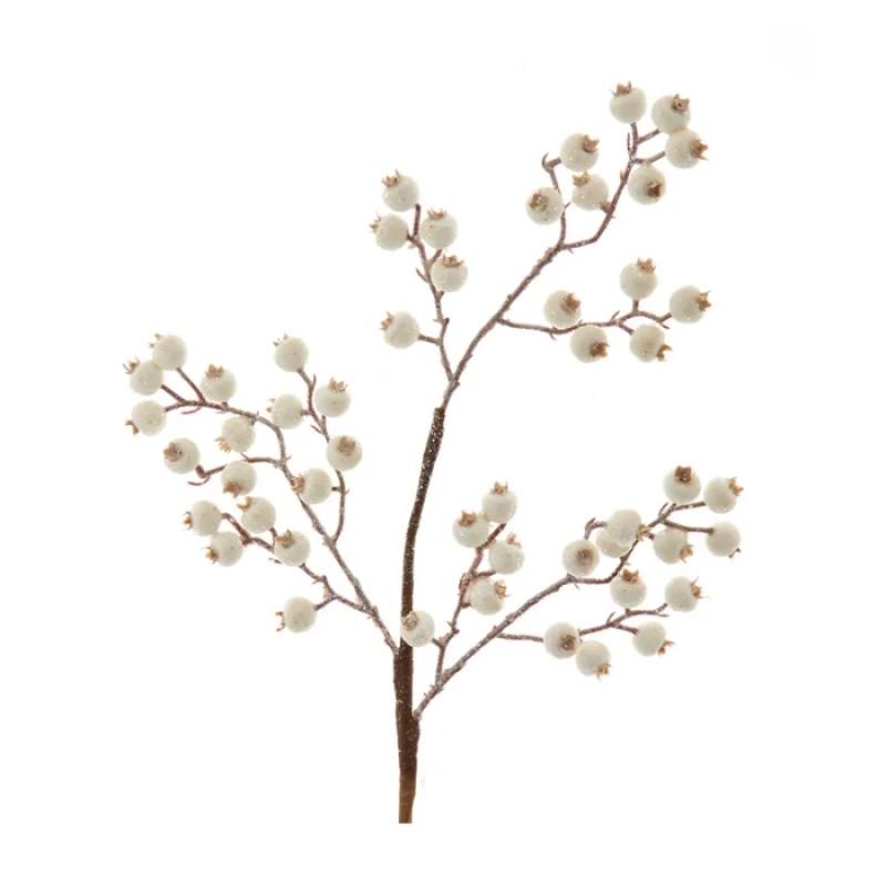This White Berry Pick from Kurt Adler is a simple yet elegant decorative accessory that adds a touch of natural beauty and purity to your decor. This decorative pick features pristine white glittered berries, which evoke a sense of freshness and simplicity, making it a versatile and timeless addition to your decorations. The color white symbolizes purity, innocence, and a sense of new beginnings, making it a suitable choice for various occasions and settings. Whether you're decorating for a wedding, a winter-themed event, or simply want to add a clean and refreshing element to your space, this pick is a perfect choice. Each white berry on the pick is carefully crafted to mimic the beauty of real berries, ensuring a lifelike appearance that is both charming and graceful. The absence of any additional colors or glitter makes this pick a versatile and neutral option, allowing it to seamlessly complement a wide range of decor styles and color schemes. This pick is a versatile and understated decoration that can be used in various ways. Whether you choose to incorporate it into a floral arrangement, wreath, centerpiece, or display it as standalone decor, this pick adds a touch of natural elegance to your surroundings. It's a fantastic choice for creating a serene and calming atmosphere, while also allowing you to express your personal style through additional decor elements. With its simple beauty and universal appeal, the White Berry Pick is an excellent addition to your decor, whether for a special event or to bring a touch of nature into your everyday space.