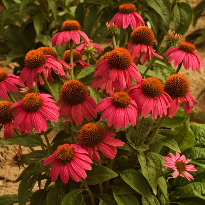 The rose-purple, 3-4" flowers of this variety have orange cones and overlapping reflexed petals. They bloom from late June thru September on sturdy multi-branched plants.