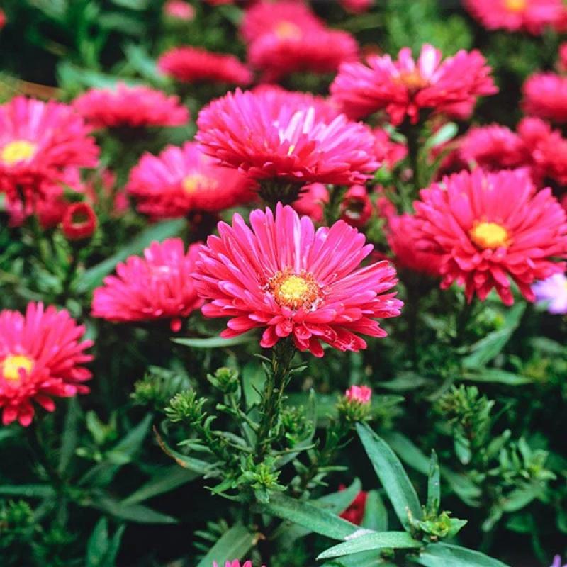 'Jenny' produces vivid magenta-red, daisy-like blooms with golden centers in late summer to fall. Its compact form makes it ideal for borders and containers, and it provides essential late-season nectar for pollinators. A reliable performer that thrives in sunny locations with good air circulation.