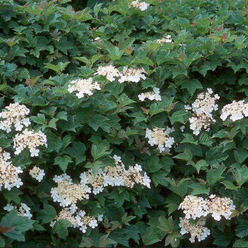 A compact, mounded viburnum with dense foliage and occasional clusters of small white flowers in spring. 'Nanum' is mostly grown for its tidy form and lush green leaves that turn reddish-purple in fall. Ideal for low hedges and foundation plantings.