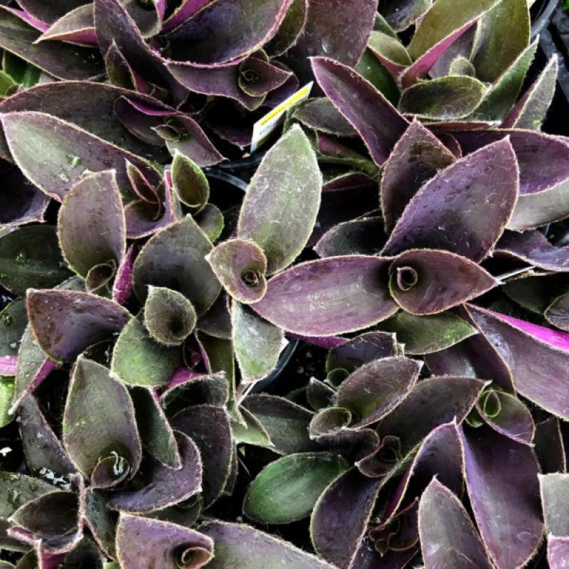 A striking variety with velvety, deep purple leaves accented by subtle green undertones and soft hair-like texture. Tradescantia 'Pale Puma' is a bold, low-maintenance plant that thrives in bright, indirect light and brings dramatic color to tabletops or hanging planters.