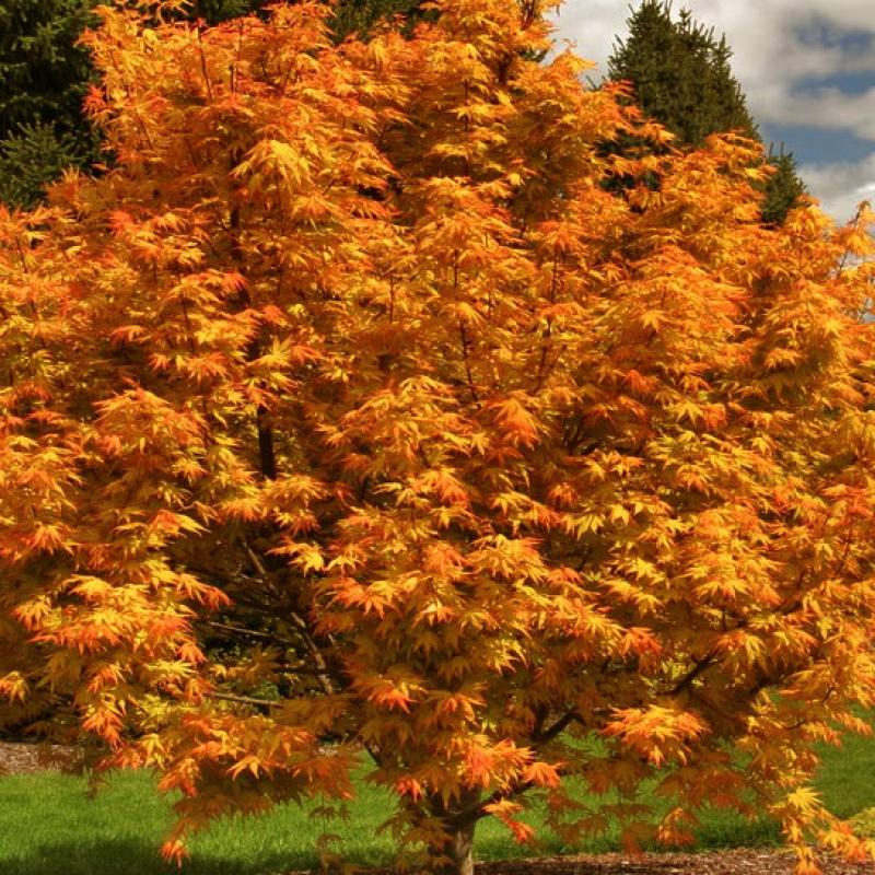 The delicately-shaped foliage emerges bright sherbet orange before maturing to yellow-green often with orange highlights. Interesting bright green bark and an intense orange fall color complete the look.