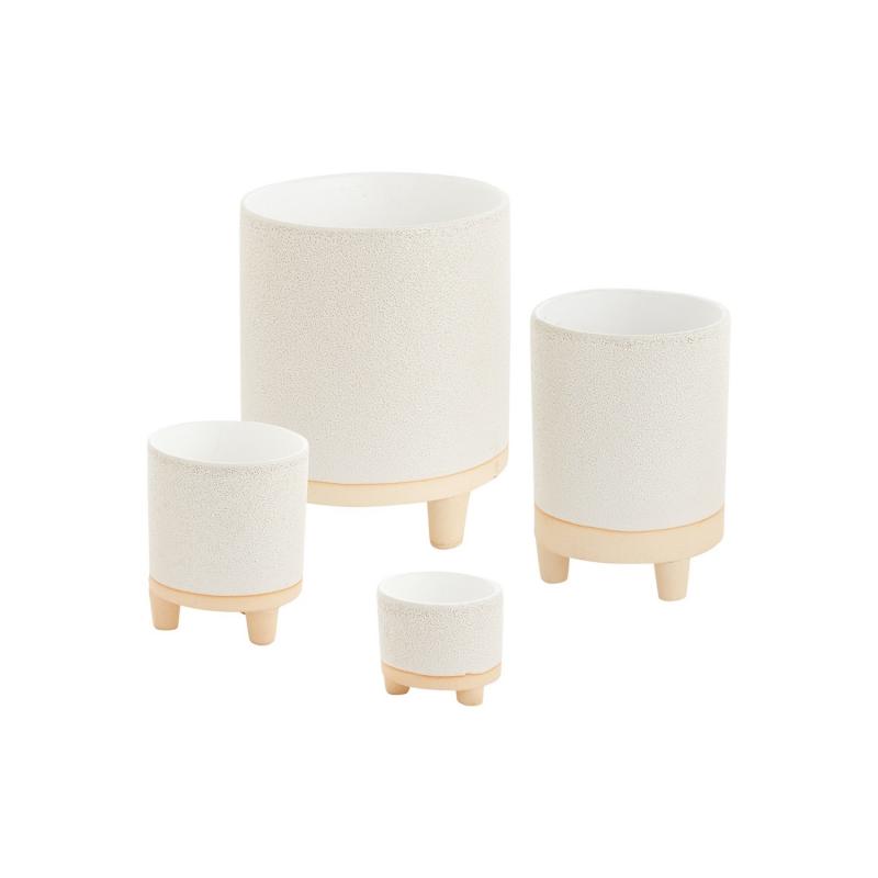 The modern Delray Footed Pot offers a unique two-tone finish, with a bubbled white finish on top and smooth cream color on the base and feet. Made to fit a 4.5" drop-in orchid pot.