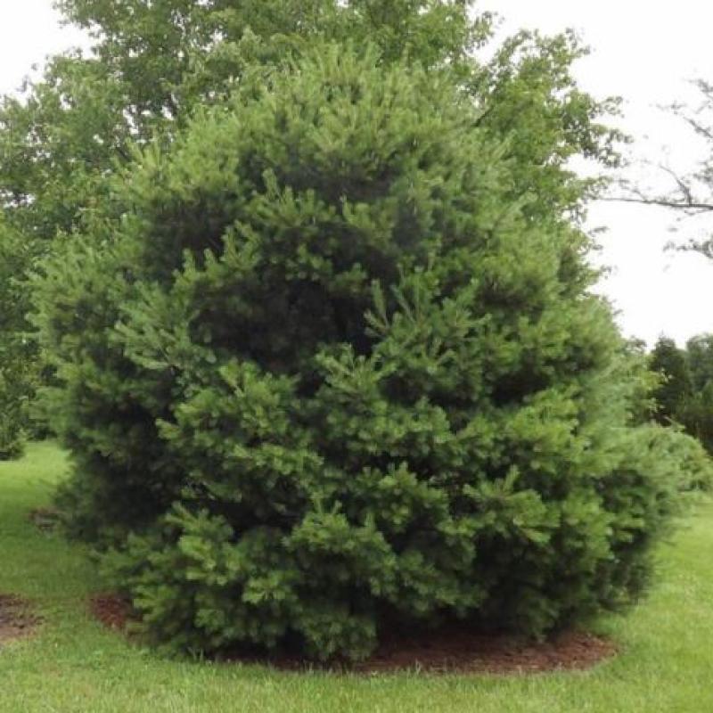 A compact, dense selection of Eastern White Pine with soft blue-green needles and a broadly rounded habit. 'UConn' offers a refined, uniform form ideal for foundation plantings, screening, or naturalized settings.