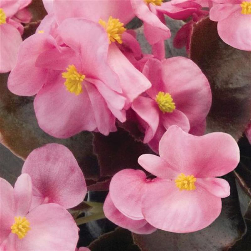 A very early and extremely prolific blooming collection of garden plant, the Nightlife series has the darkest bronze foliage of any begonia available.