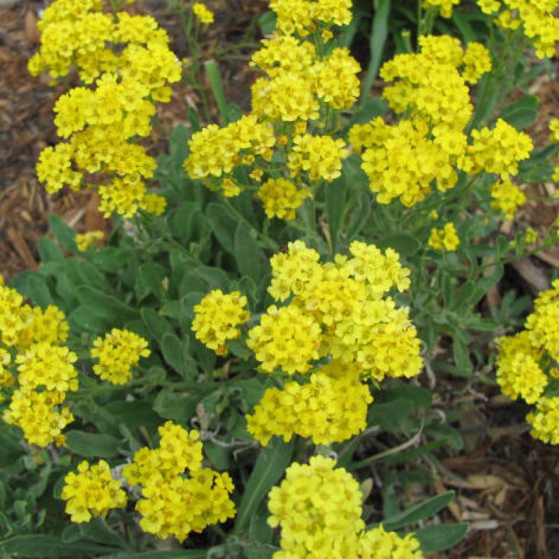 An improved form with better disease resistance, which offers low and compact rounded mounds of gray-green leaves that are topped by frothy masses of golden yellow flowers in late April to early May.