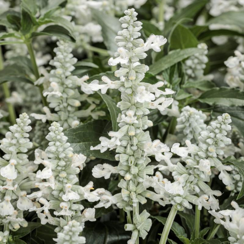 Elegant and easy-care, this compact salvia offers pristine white flower spikes that bloom all season. A favorite of hummingbirds and pollinators, it’s ideal for containers and sunny beds.