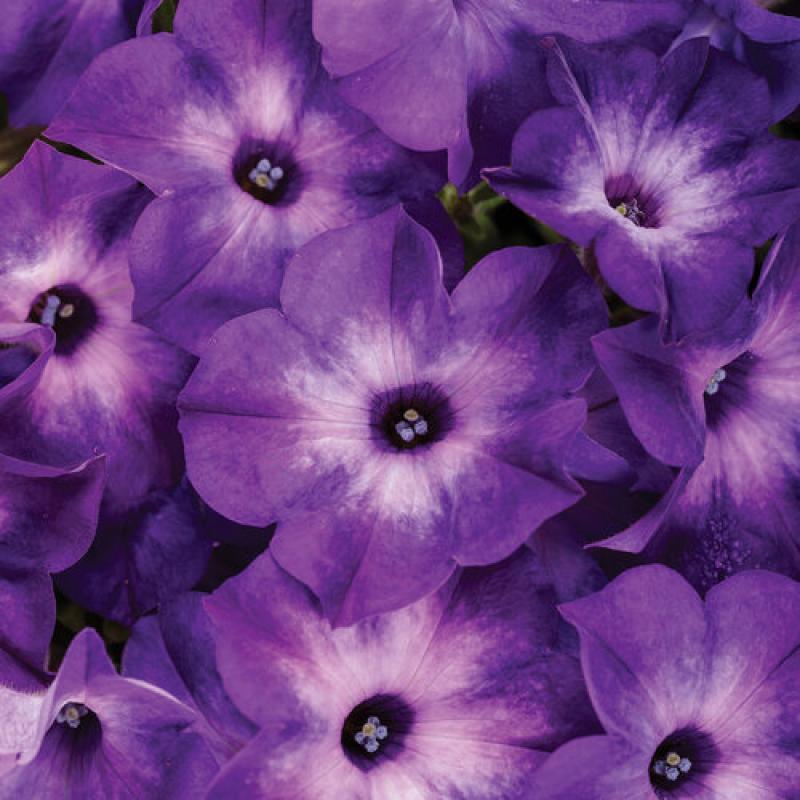 Deep violet petals fade to a soft lavender halo at the center, creating a crown-like effect. This stunning Supertunia offers season-long color with vigorous growth and low maintenance.