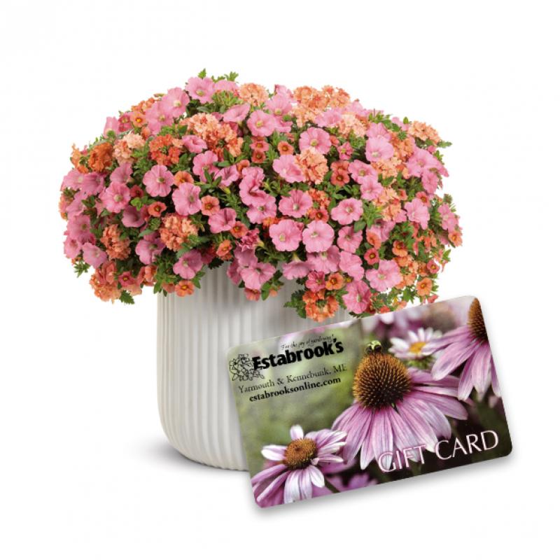 Add instant charm with this lush patio planter bursting with pink blooms - perfect for decks, patios, or entryways. Includes a $100 Estabrook's Gift Card to keep the garden growing. A beautiful gift with lasting appeal! Pottery not included.