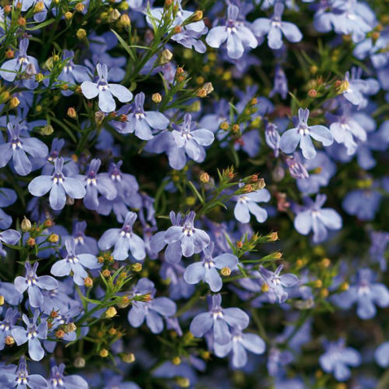 Soft and delicate sky-blue flowers with white inner markings will cover these cascading, elegantly mounded plants. They will also offer excellent heat tolerance in part sun to full sun locations.