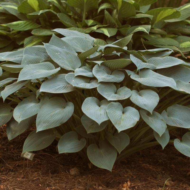 A former Merit Award recipient, 'Halcyon' will grow into a medium plant with rounded, heart-shaped, thick, blue leaves and pale lavender flowers in July. This is the quintessential medium sized blue Hosta!