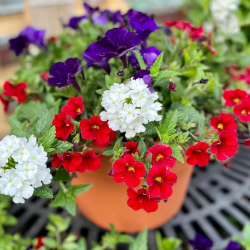 A colorful, ready-to-enjoy annual patio pot designed to bring instant beauty to your outdoor spaces. Each pot is artfully arranged with vibrant annuals in a mix of complementary colors for long-lasting seasonal displays. Perfect for porches, patios, and entryways.
