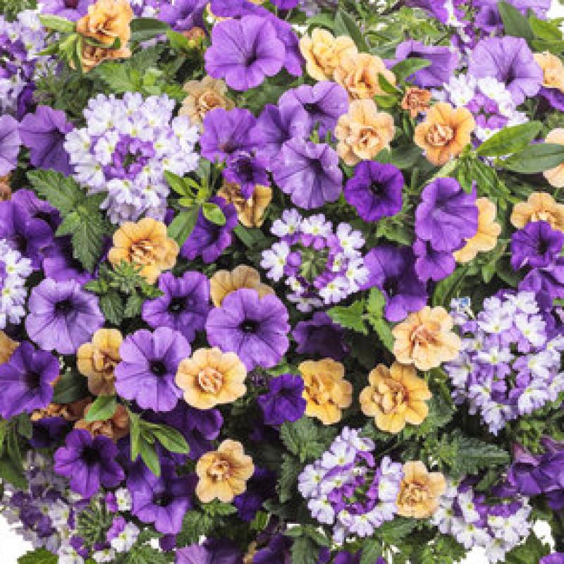 Add instant color to a deck, porch or patio with our combination hanging baskets and patio pots. Each combination brings together several colorful varieties of annuals into a group that packs a punch of intense color.
