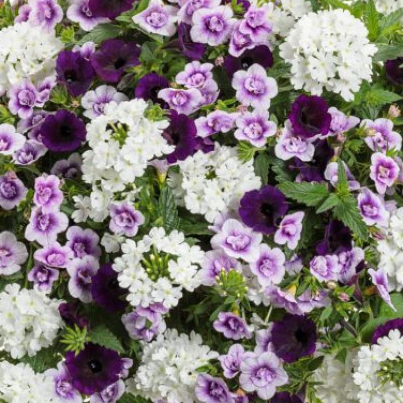Add instant color to a deck, porch or patio with our combination hanging baskets and patio pots. Each combination brings together several colorful varieties of annuals into a group that packs a punch of intense color.