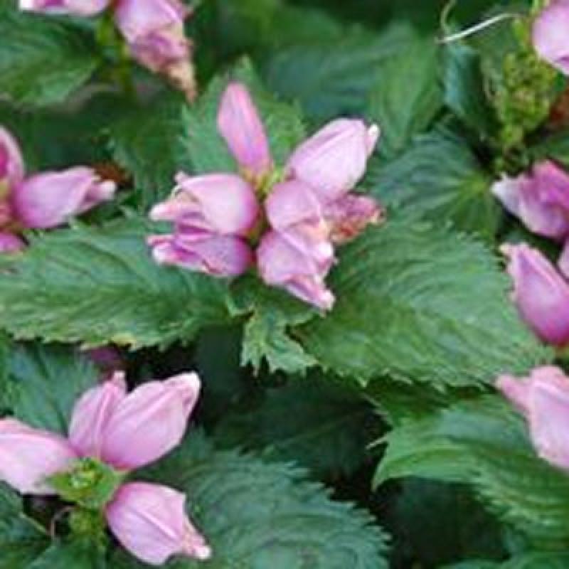 'Hot Lips' features wide, deep green foliage that emerges bronze-green before giving rise to red tinged stems and deep rose-pink flowers in August.