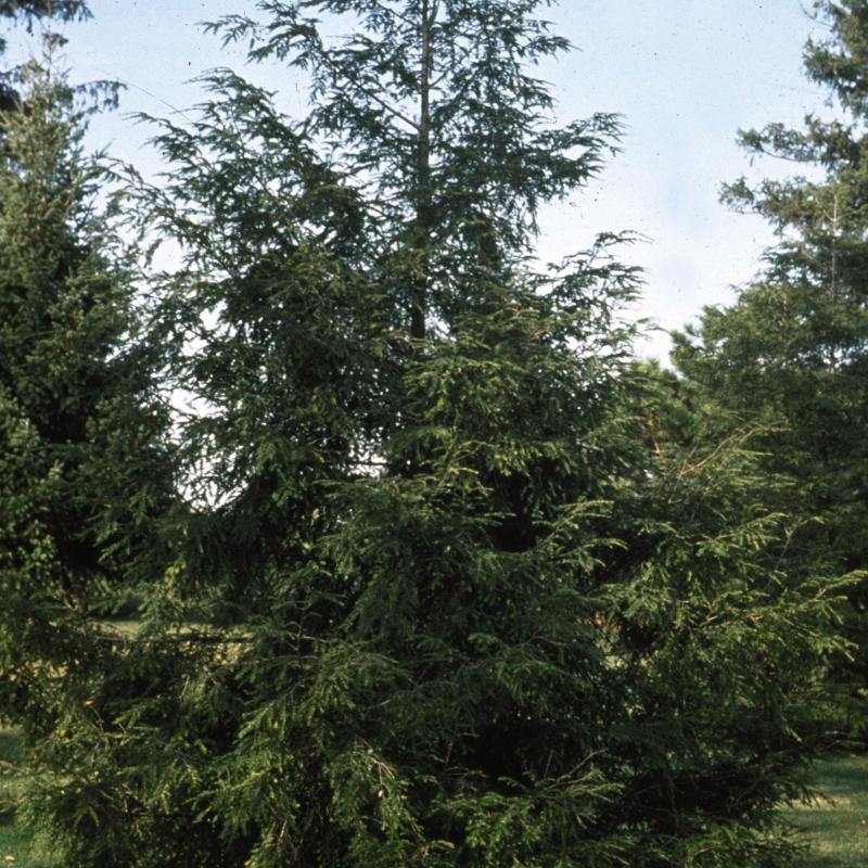 This fast growing tree or hedge specimen will withstand hard pruning. The small, deep evergreen needles held on elegant branches gives this plant a soft, lacy quality and the tiny light brown cones are a chickadee favorite!