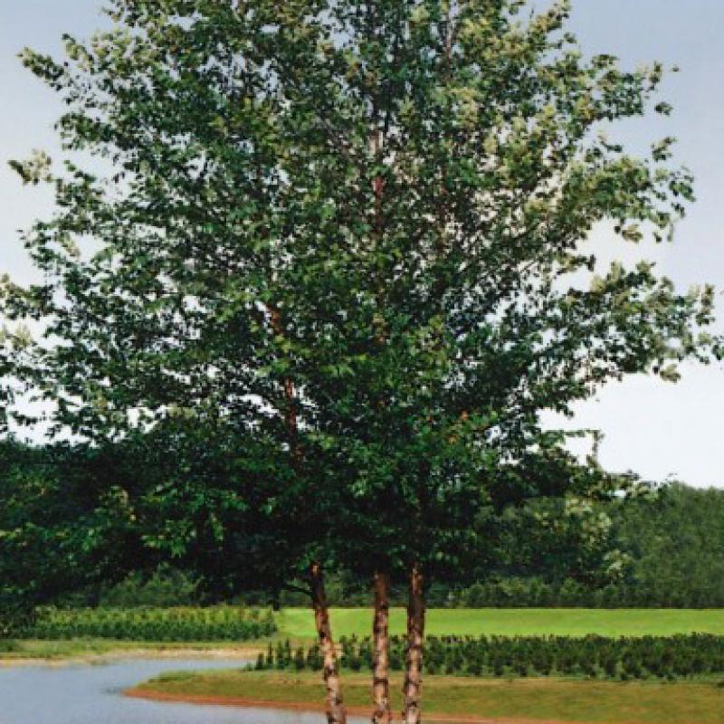 'Dura-Heat' offers deep green, toothed, trident-like leaves with a thicker substance that holds up to the summer heat better than other varieties. Exfoliating bark of white, salmon and cinnamon adds to both the summer and winter interest.
