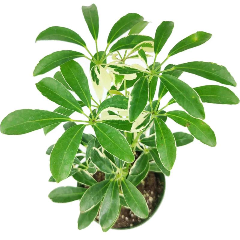 Featuring variegated cream and green leaves, 'Trinette' distinguishes itself from other Schefflera varieties.