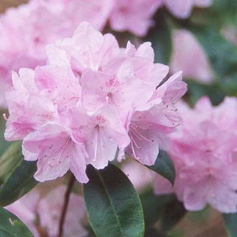 Delicate clusters of silvery-pink blooms define this elegant rhododendron. Its softly ruffled petals and compact, rounded habit make it a beautiful choice for foundation plantings or shaded borders. Evergreen foliage provides lasting texture and color.