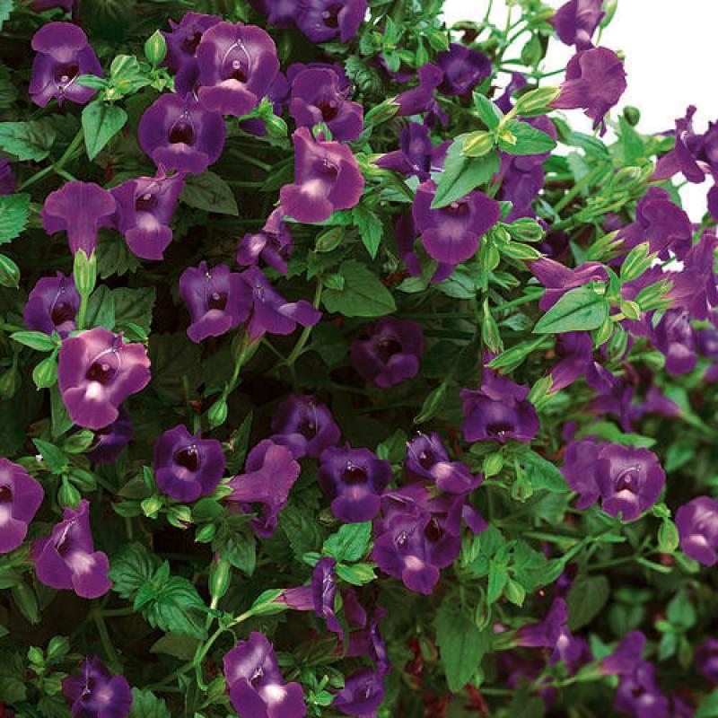 Featuring a vigorous trailing habit and an abundant amount of light and dark blue snapdragon-like flowers, 'Summer Wave Large Violet' will bloom all summer long and is great for hanging baskets.
