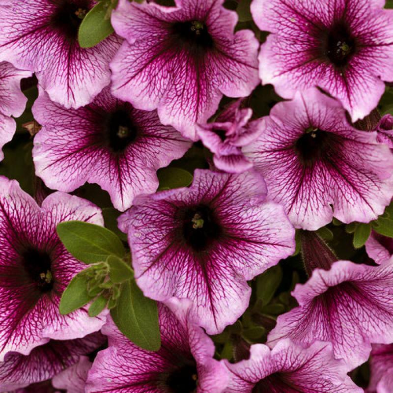 These mounding to trailing plants feature masses of light purple flowers with purple venation and deep purple interiors all season long.