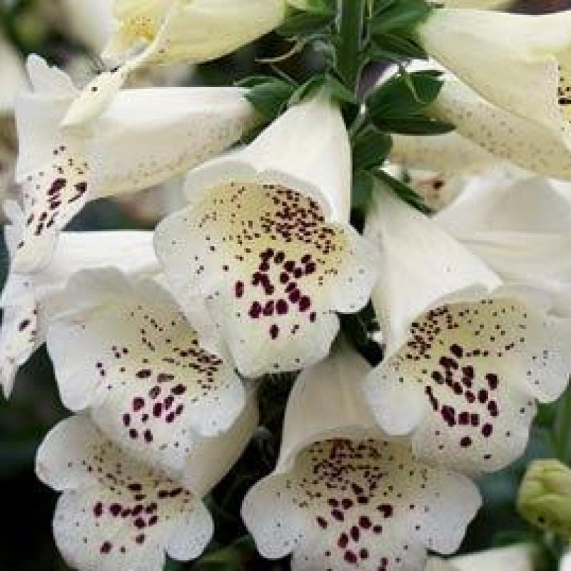 Tall, broad spikes of cream flowers with burgundy spotting on the interior of each individual bloom encircle the stems of this excellently branched plant that will produce from June until September.