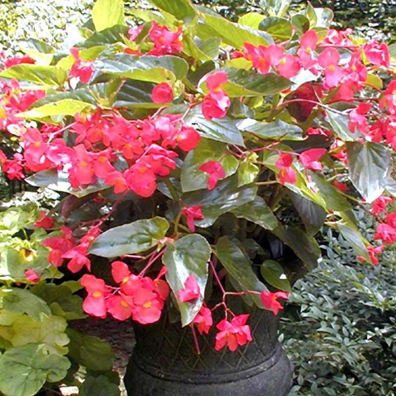 Bunches of scarlet-red flowers are produced amongst the glossy-green foliage which is uniquely shaped and give it the name of 'Dragon Wing'. Good heat tolerance and lush vigorous growth make this a spectacular plant.