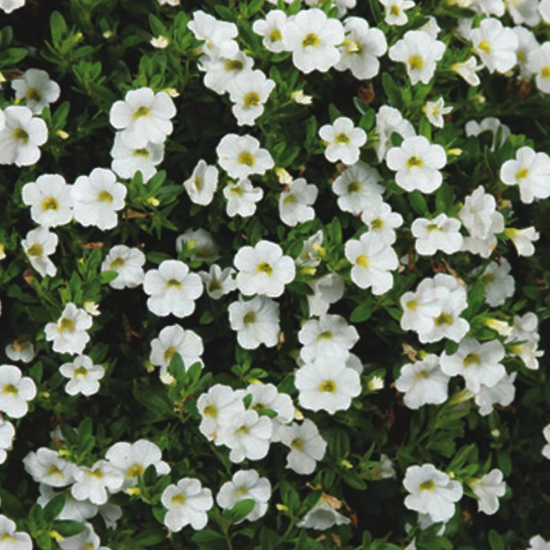 Produces an abundance of pure white bell-shaped flowers with yellow throats on low mounding, heat tolerant plants that will thrive in most any sunny location.