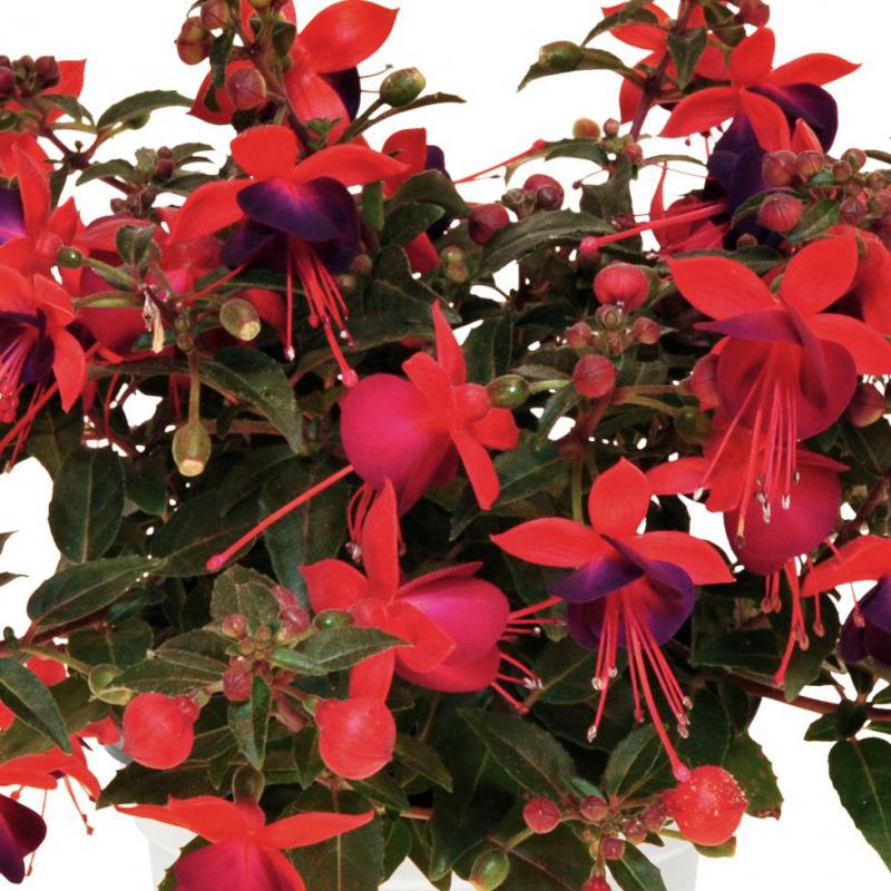 A lovely petite variety that has an upright to rounded habit, 'Jollies Nantes' offers charming dangling flowers of a deep vibrant red with purple "skirt" petals and showy red stamens.