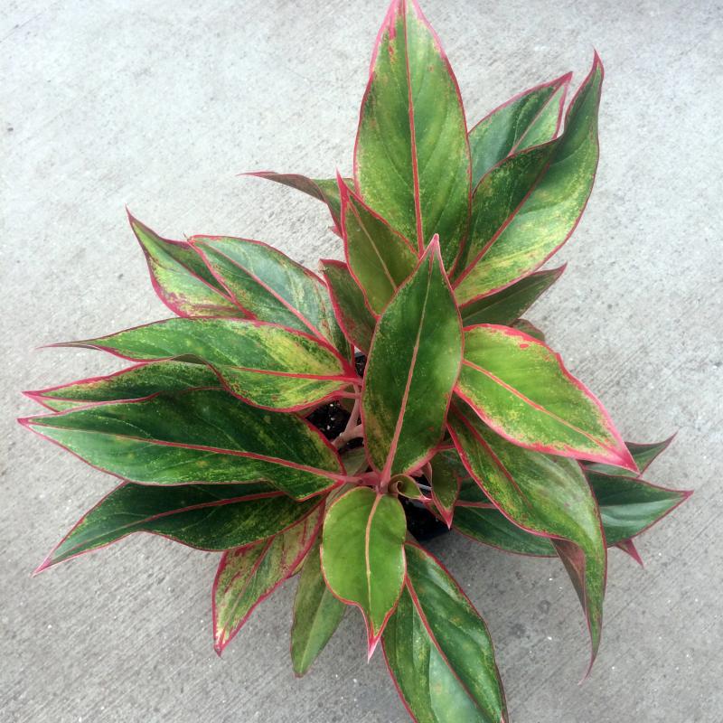 This variety exhibits lance-shaped dark green leaves that are flushed with pink and red tones. It will achieve its best color in medium indirect light. Water when soil becomes dry and keep the temperatures between 60-75 degrees.