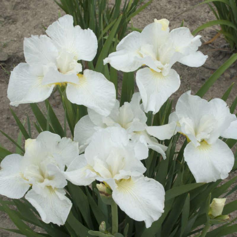 'Swans in Flight' is a later blooming white Siberian Iris and much improved over 'White Swirl' thanks to huge 5" white flowers that command attention. Plant a group of them together and it will look like a lake of white "orchids"!