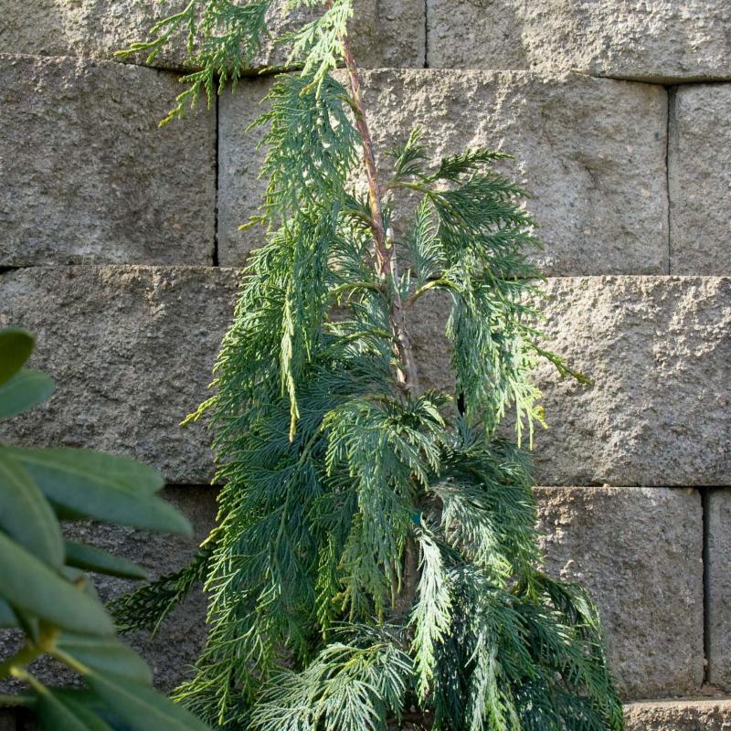 The wide, sweeping branches of this variety are draped with finely textured, blue-green foliage. In youth, the branches ascend; with age, they open horizontally and produce an upright, pyramidal shape.