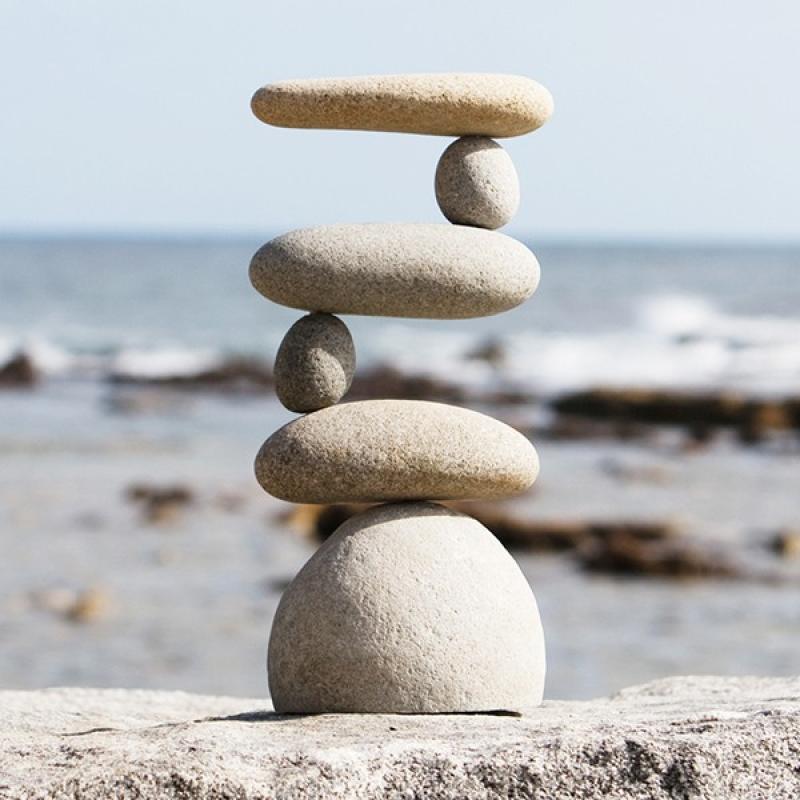 6 part natural beach pebbles / Medium river rocks stacked side to side with metal rod supports.
