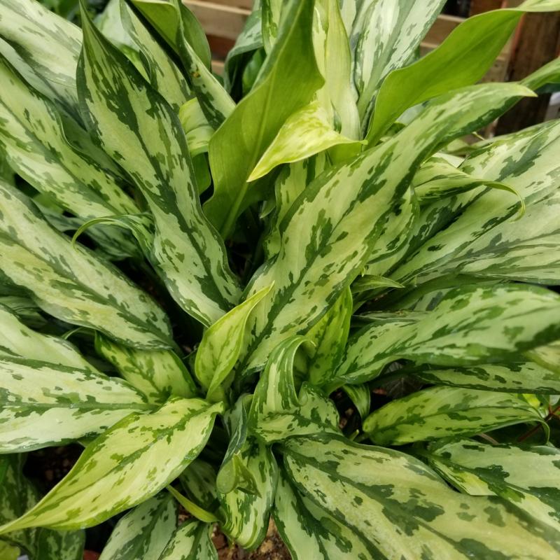 This plant's glossy lance-shaped leaves will have an interesting splatter of lighter green splotches against dark green edges. It will do best in low light with evenly moist soil and temperatures in the range of 60-70 degrees.