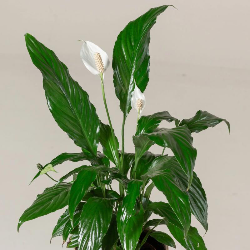 A compact peace lily with glossy green leaves and elegant white blooms that brighten any room. Known for its air-purifying qualities, it thrives in low light and adds timeless beauty to indoor spaces.