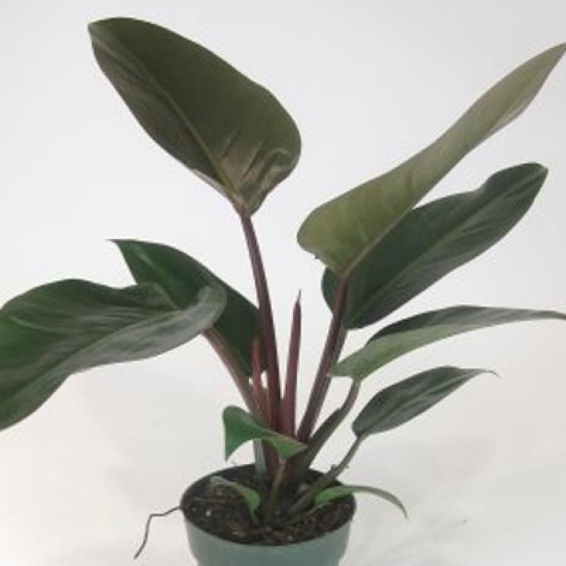 This variety's broad, thick, dark burgundy-green leaves appear on sturdy reddish stems that mature from glossy deep red new growth. It is quite cold sensitive, so place in bright indirect light with temperatures from 68-80 degrees for best results.
