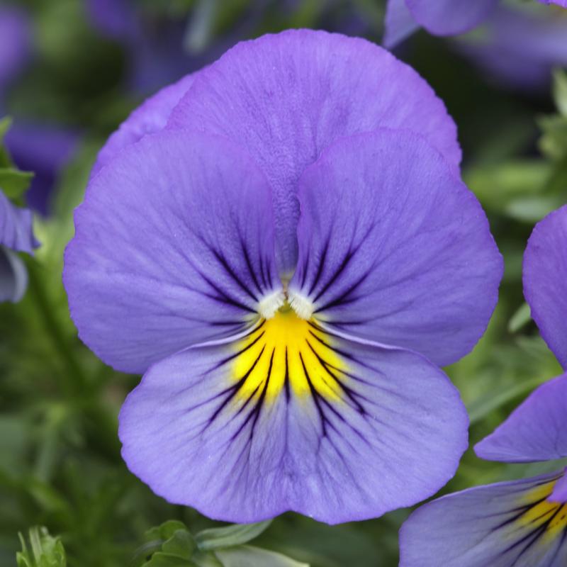 A unique trailing to cascading variety that is very hardy and vigorous, it will be covered in masses of fragrant flowers of soft violet-blue and light blue with cheery yellow centers.
