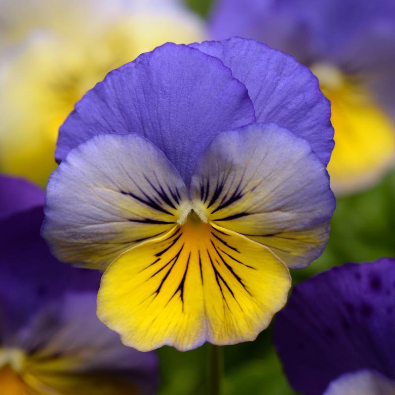 A unique trailing to cascading variety that is very hardy and vigorous, it will be covered in fragrant masses of large pansies of soft violet-blue and light yellow that lighten as the flowers age to create a multi-color effect.
