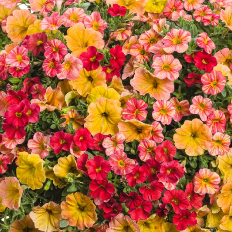 Add instant color to a deck, porch or patio with our combination hanging baskets and patio pots. Each combination brings together several colorful varieties of annuals into a group that packs a punch of intense color.
