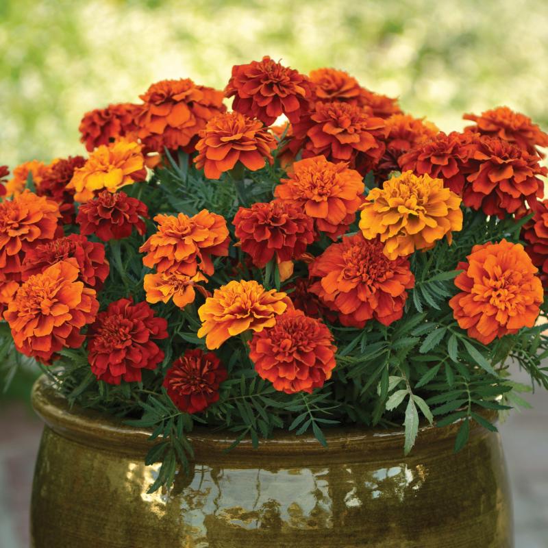 Multicolor on one plant! This variety's flowers open red then turn to fiery bronze and dark gold as they mature. A perfect choice for the patio in containers!