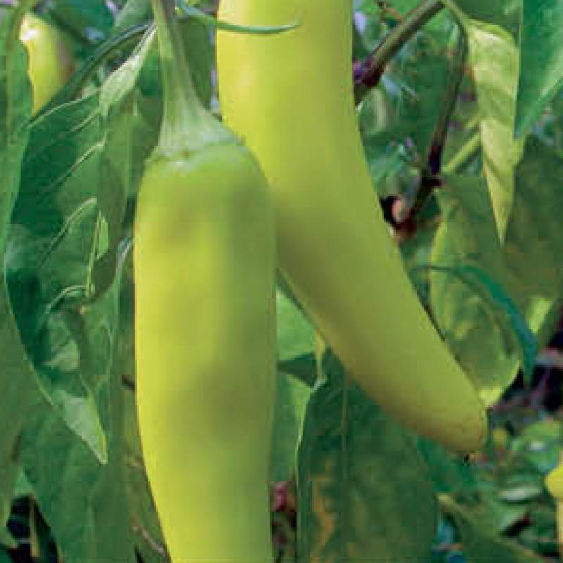 An early, highly prolific hot pepper with bright waxy yellow fruit that will turn orange-red when ripe, 'Hungarian Wax' will produce 5-6" long and 1" wide fruit that is popular for canning.