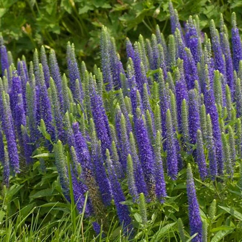 These upright, compact plants feature deep royal blue spikes of flowers from July to August. The very showy blooms will continue into fall if deadheaded.