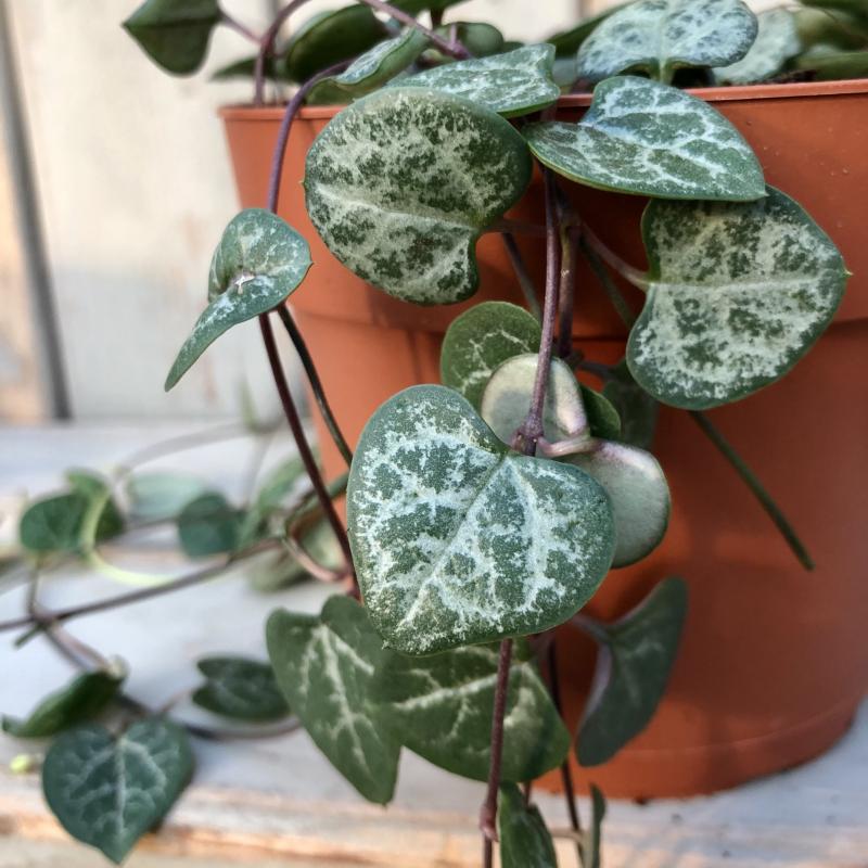 With delicate strands of heart-shaped leaves and occasional tubular mauve flowers, this is a small plant that will fit nicely in a small space!