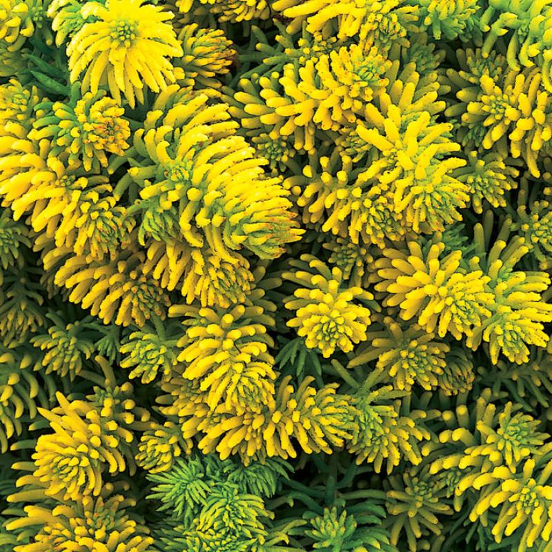 Wonderful as a groundcover or in a rock garden, this sport of 'Angelina' is more compact with brighter foliage. Foliage is the focal point with this no-fuss plant thanks to its striking needle-shaped leaves in a brilliant, golden yellow color.
