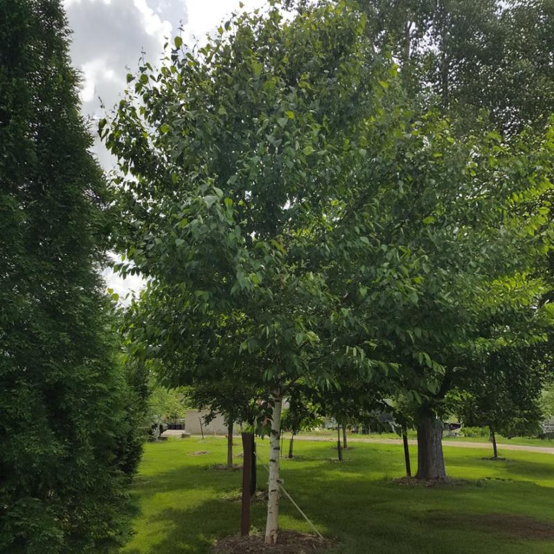 A heat-tolerant, improved selection of the native paper birch. ‘Oasis’ features a strong central leader, bright green foliage, and the signature white, peeling bark. This cultivar offers greater resistance to bronze birch borer and thrives in a range of soil conditions.