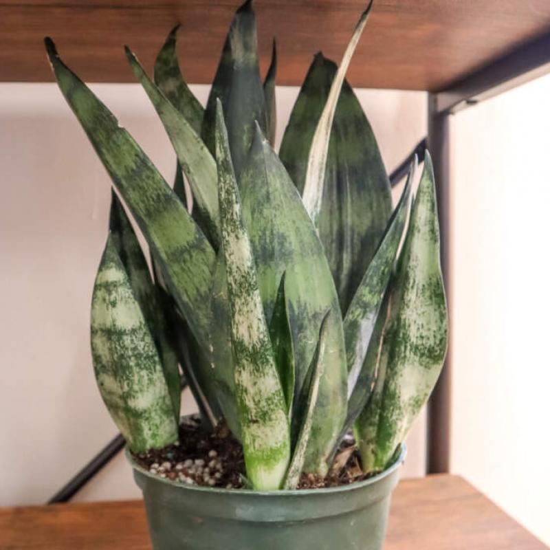 A striking Snake Plant selection with frosted, silvery-green leaves marked by deep green bands. Compact and upright, ‘Frozen’ adds cool tones and texture to any indoor space while thriving on minimal care.