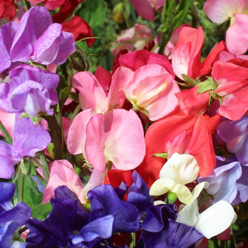 The early bloom season makes 'Mammoth' an excellent choice for early spring color. With stunning shades of crimson, lavender, salmon, deep rose, navy blue, rose pink, and salmon pink, these climbers will be perfect for that first sweet pea bouquet.