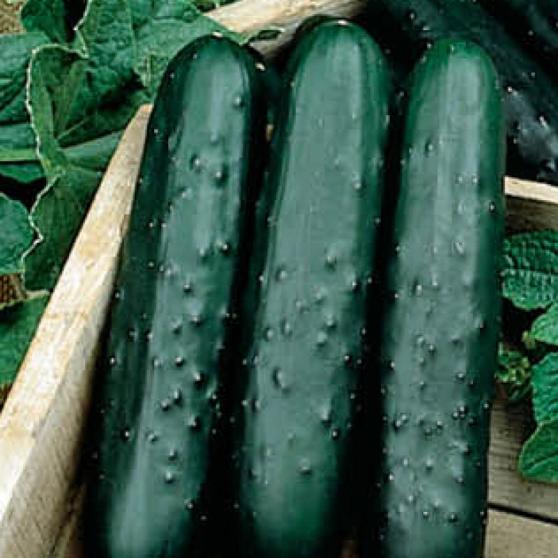 This burpless slicing variety will be productive in both warm and cool temperatures. Space 2-3 plants in hills 4-5' apart and water freely in dry weather.